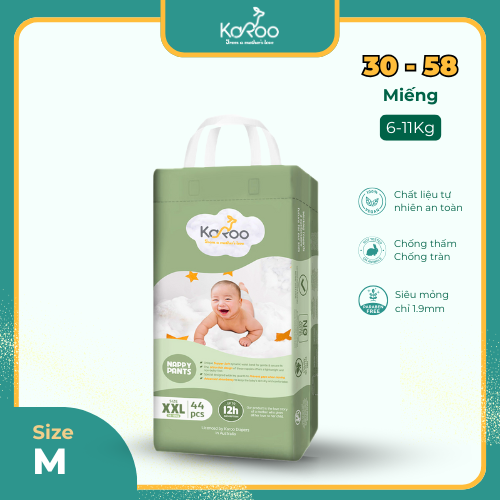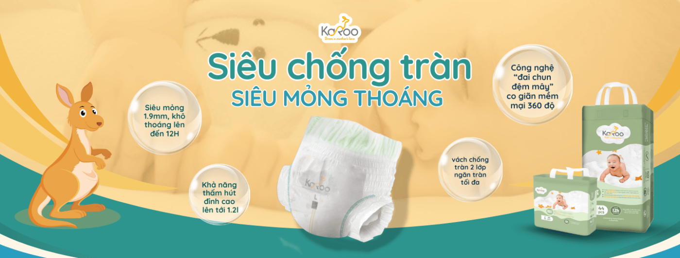 Bỉm Karoo được tích hợp công nghệ AdvanceCore-Dry hiện đại, giúp thấm hút nhanh chóng và giữ khô thoáng suốt 12 giờ